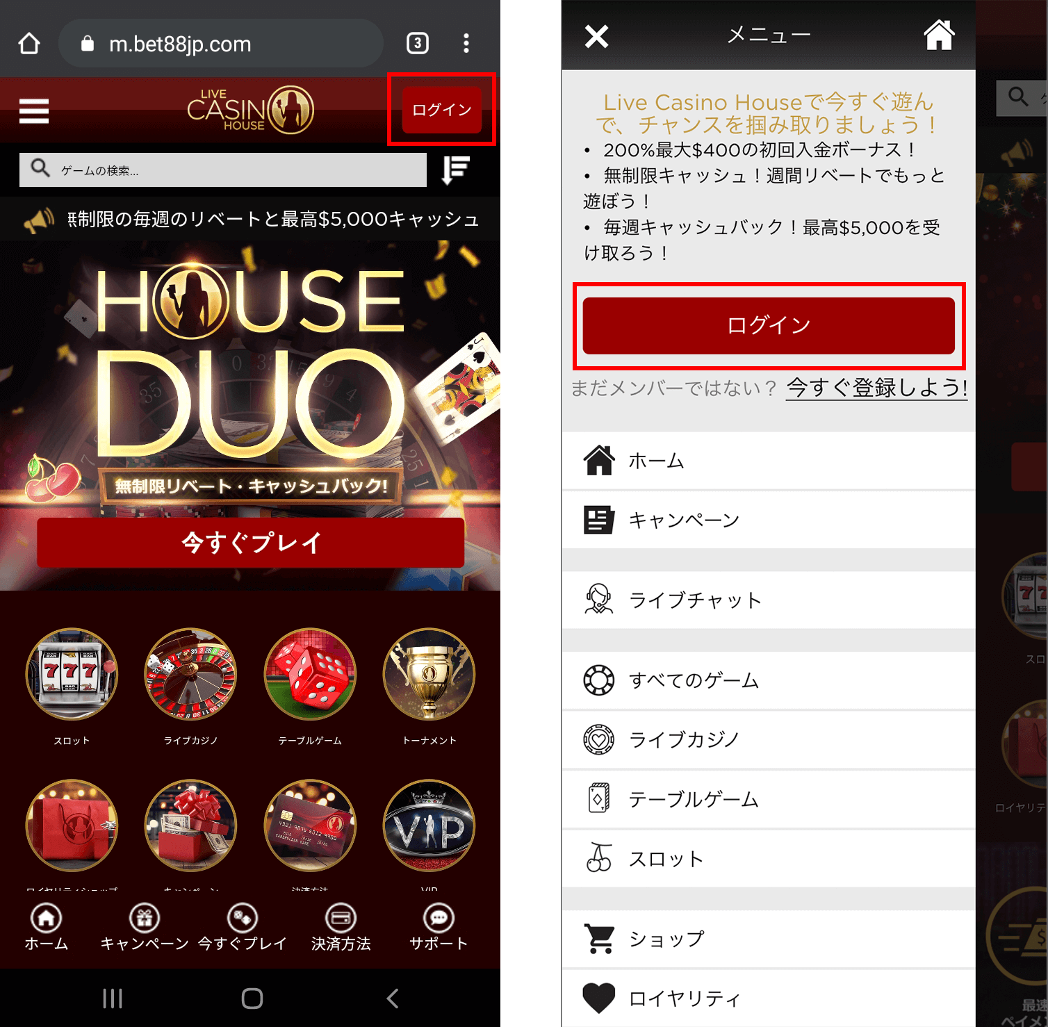 1. ウェブサイトから「ログイン」ボタンを押してログインをします。