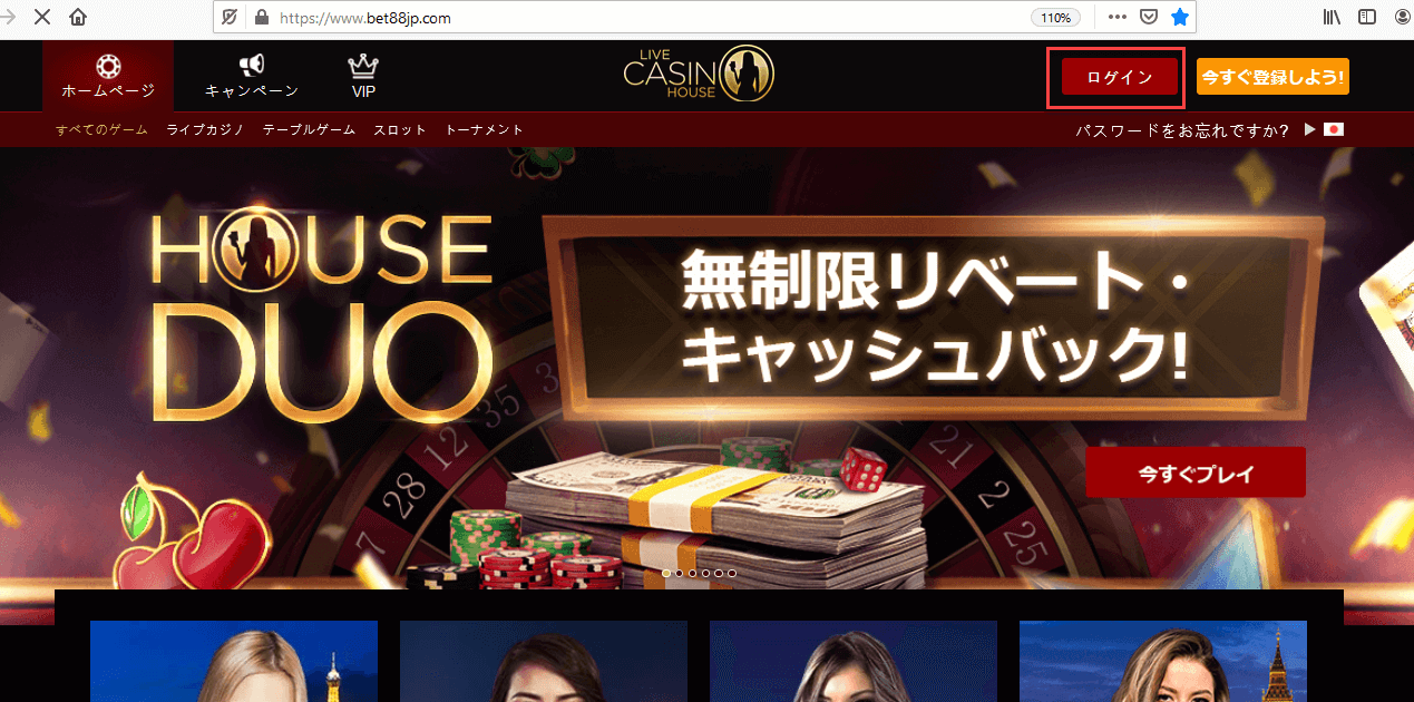 1. ウェブサイトから「ログイン」ボタンを押してログインをします。